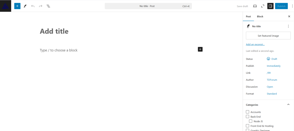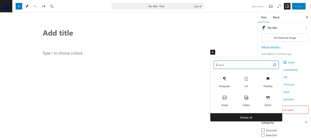 1. Enter a Title: At the top, add the title of your blog post in the “Add Title” field.